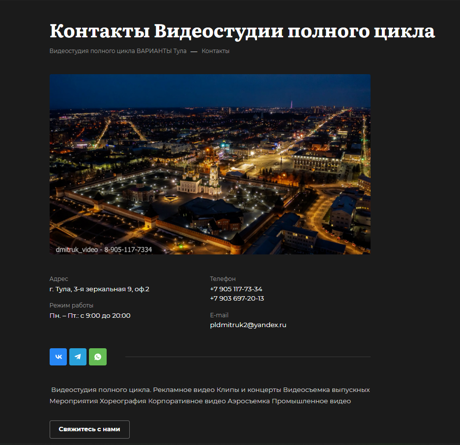 —Разработка сайта на 1с Битрикс для Видеостудии полного цикла Рекламное видео Клипы и концерты под ключ